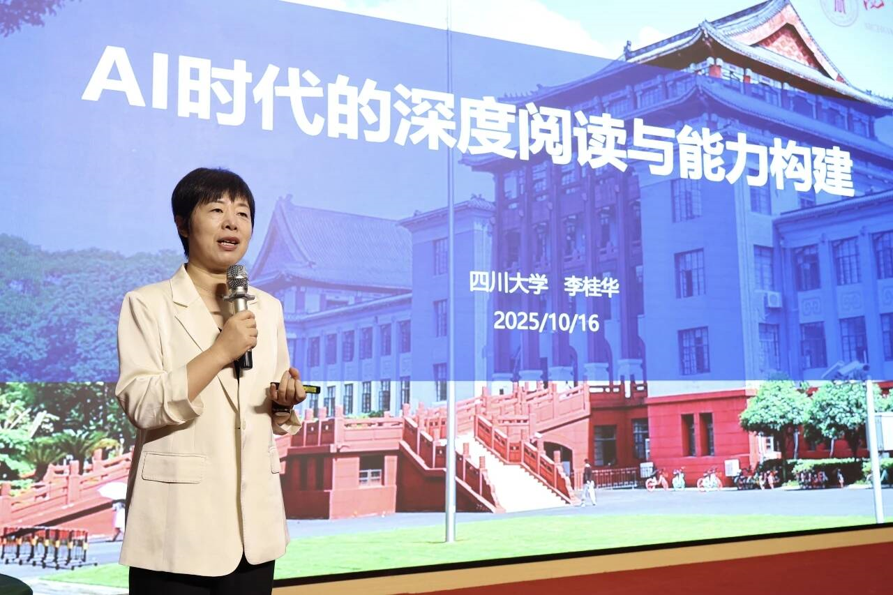 第一讲,四川大学博士生导师李桂华教授以《AI时代的深度阅读与能力构建》为题授课,提出“AI+阅读”创新理念、“错位能力”及其内核以及通过AI赋能深度阅读的路径,并以阅读疗法实践为例解析阅读能力培养在塑造同理心、提升心理能量方面的显著效果,以《西游记》阅读推广活动为例展示如何设计融合人工智能的阅读推广活动,实现“AI+阅读”落地。