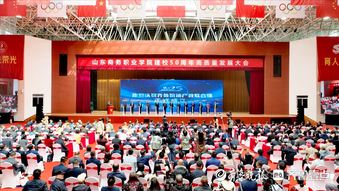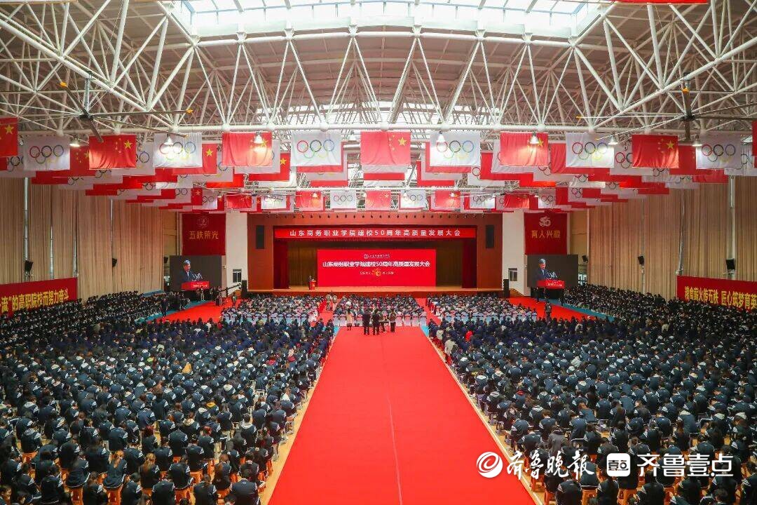 五秩荣光,育人兴粮。10月18日,山东商务职业学院建校50周年高质量发展大会在学校体育馆举行。来自国内外的知名专家学者,行业协会、学会嘉宾,全国各地的校友代表和学校师生代表等2300余人参加大会。