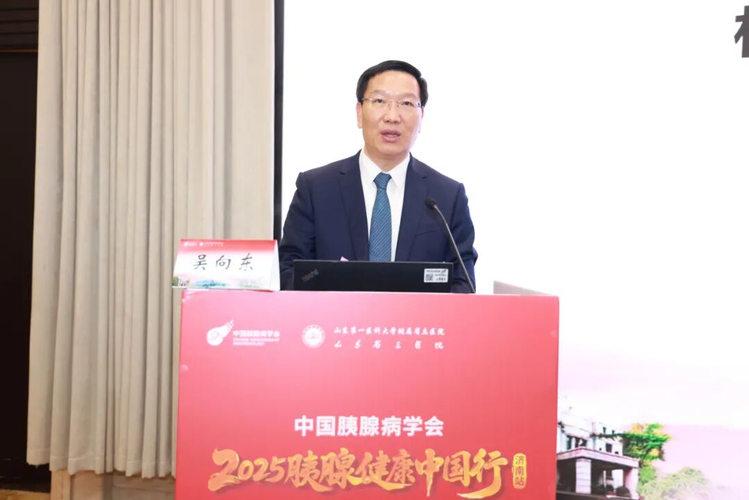 吴向东书记在致辞中介绍了医院在胰腺疾病微创治疗、综合诊疗及多学科协作方面的探索。他表示,承办本次学术会议既是中国胰腺病学会对医院学科建设与诊疗水平的高度认可,也为医院提供了宝贵的学习交流平台。医院胰腺疾病诊疗中心将充分借助学会优质资源,整合多学科力量,聚焦临床关键难题,持续提升诊疗服务水平,为健康中国、健康山东建设贡献力量。