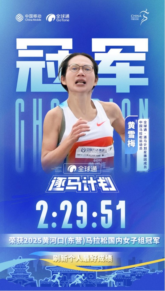 10月19日,2025黄河口(东营)马拉松激情开跑。中国马拉松运动员黄雪梅延续火热状态,以2小时29分51秒的强势表现夺冠,成功突破“230”大关,并刷新个人最佳成绩,进一步巩固其“大众马拉松一姐”的地位。作为“全球通·逐马计划”星播团成员,黄雪梅的此次折桂助力星播团实现新赛季前四场赛事冠军的包揽。四连冠的佳绩,不仅展现了星播团成员的专业魅力,更使他们成为赛中备受瞩目的焦点,让榜样力量闪耀东马赛道。