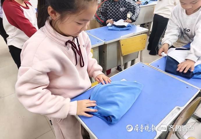 “原来叠衣服还有这么多小窍门!”“现在我能自己把衣服叠得整整齐齐,回家要帮妈妈做家务!”课后,同学们拿着自己的“劳动成果”,脸上洋溢着自豪的笑容,纷纷分享收获。不少家长也反馈,孩子课后主动承担起整理衣物的任务,变得更有责任感了。