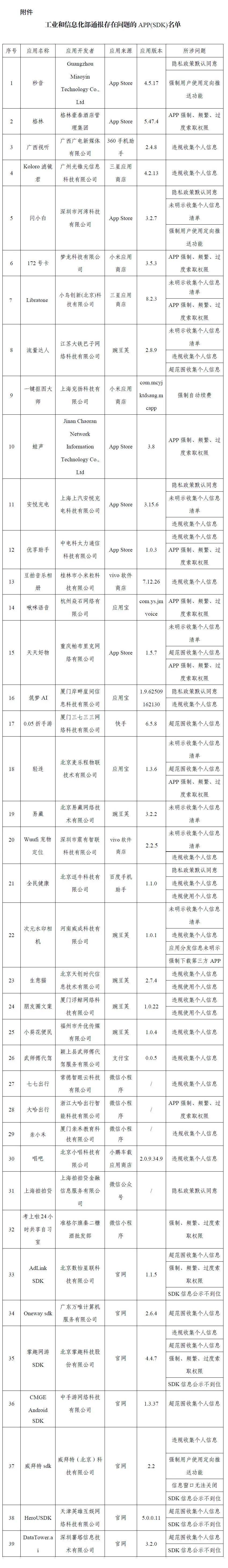 工业和信息化部要求,相关App及SDK应按有关规定进行整改,整改落实不到位的,将依法依规组织开展相关处置工作。