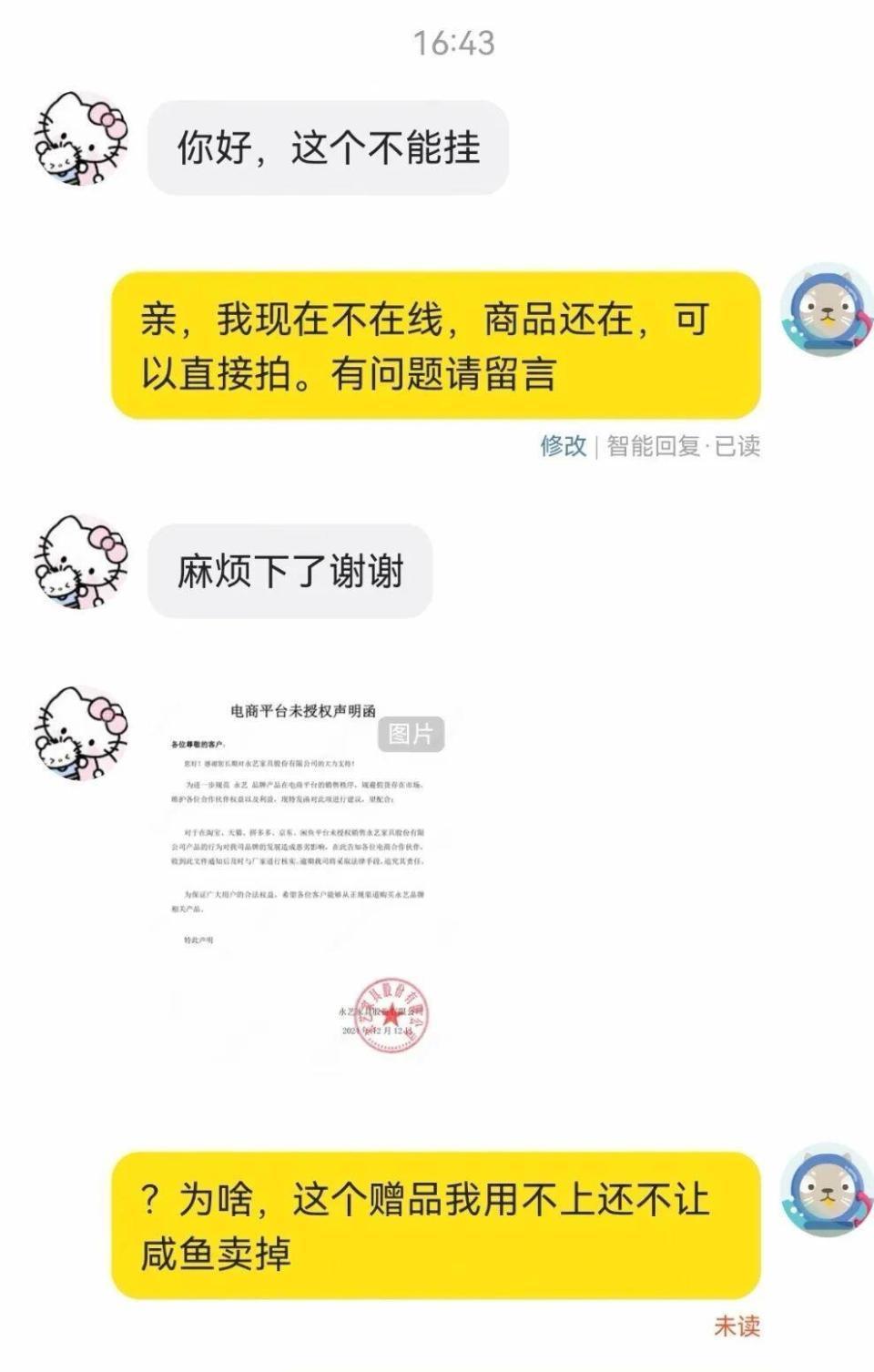 消费者将赠品椅子挂上二手交易平台,却收到永艺品牌方发来函件。