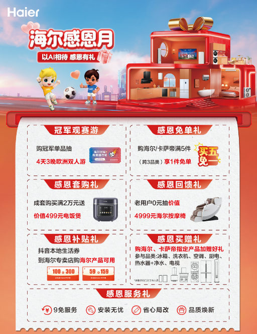 作为民族品牌的杰出代表,海尔始终将用户需求置于首位。多年来,海尔感恩月已不仅是一场年度促销活动,更是一个与用户深度互动、传递品牌温度的重要IP。它承载着海尔对“人单合一”模式下用户信任的深切感恩,也是其持续迭代用户体验、践行社会责任的具体实践。