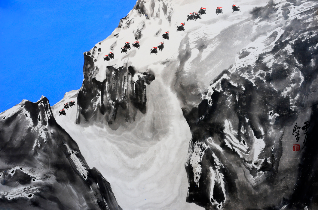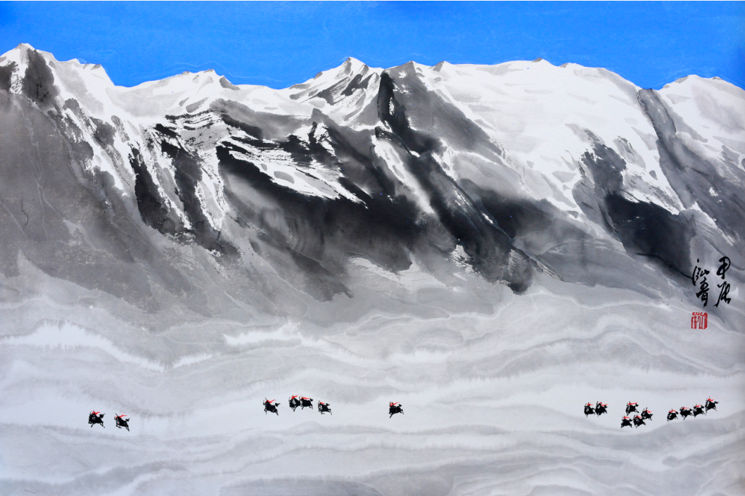 艺术家找到托物言志的爱好并不难,但要形成风格,则不易。这里既需要学识,需要悟性,甚至需要天赋。我觉得,初敬业选择雪山牦牛和他的个性气质多少有些关系。他豁达爽朗,对人充满善意,坚毅而质朴,这样的人选择雪山、旷野和牦牛作为托物言志的符号,是适宜的。客观上说,过去的四十年,各种不同艺术风格在中国得到介绍和推广,自由和开放为画家提供了宽松的环境。初敬业是一位真诚而且明亮的艺术家,他对绘画充满热情,积极参与当代生活,努力将艺术分享给社会,而不是蜷曲在个人情趣中自怜自叹的小画家。同样的时空并不能让每个艺术爱好者都成为优秀艺术家,这里有价值追求的区别,有笔墨悟性的高低,也有个人志趣的选择,等等。豁达开朗的个性,全面的专业技能,丰富的人生经历和高远的审美旨趣,造就了初敬业先生现在的艺术风格。初先生正在兴旺时期,他的艺术前途是光明的,远大的。(作者:王兆军 著名文学家、文艺评论家、书画家)