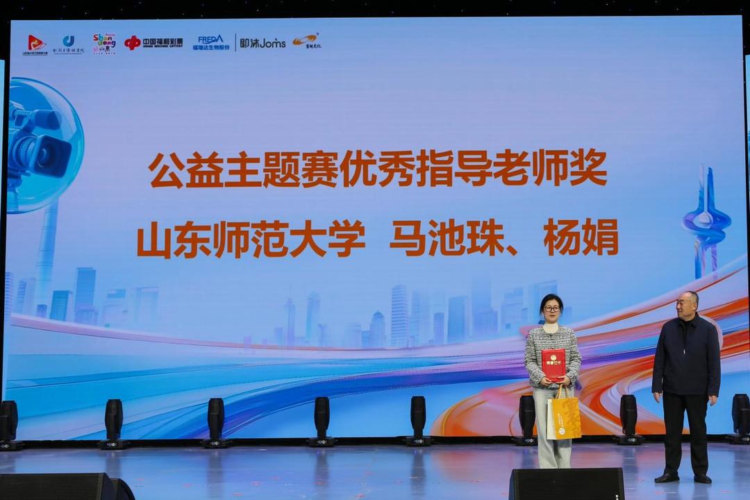 随后的颁奖环节将现场气氛一次次推向高潮。在激昂的乐曲与热烈的掌声中,“公益主题”及三大品牌主题赛的一、二、三等奖获奖代表分批上台,从颁奖嘉宾手中接过象征荣誉的获奖证书。各赛道一等奖获奖代表都分享了自己的创作理念,从齐鲁文化的传承守护到品牌科技的创新表达,从公益精神的生动诠释到身边故事的创意演绎,真挚的分享赢得现场阵阵掌声。
