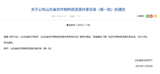 首批共享的24份资源,是山东省种业振兴行动系统工作的一个关键节点。早在2020年印发的《山东省农业种质资源保护与利用中长期发展规划(2020-2035年)》中明确表示,山东省农业农村主管部门将定期公布可供利用的种质资源目录,有效保护创制人合法权益,激发种质资源创新的原动力。随着此项工作的持续推进,更多优异种质将纳入后续批次,形成支撑育种创新的持续“资源流”,为山东省种业振兴提供更多保障。