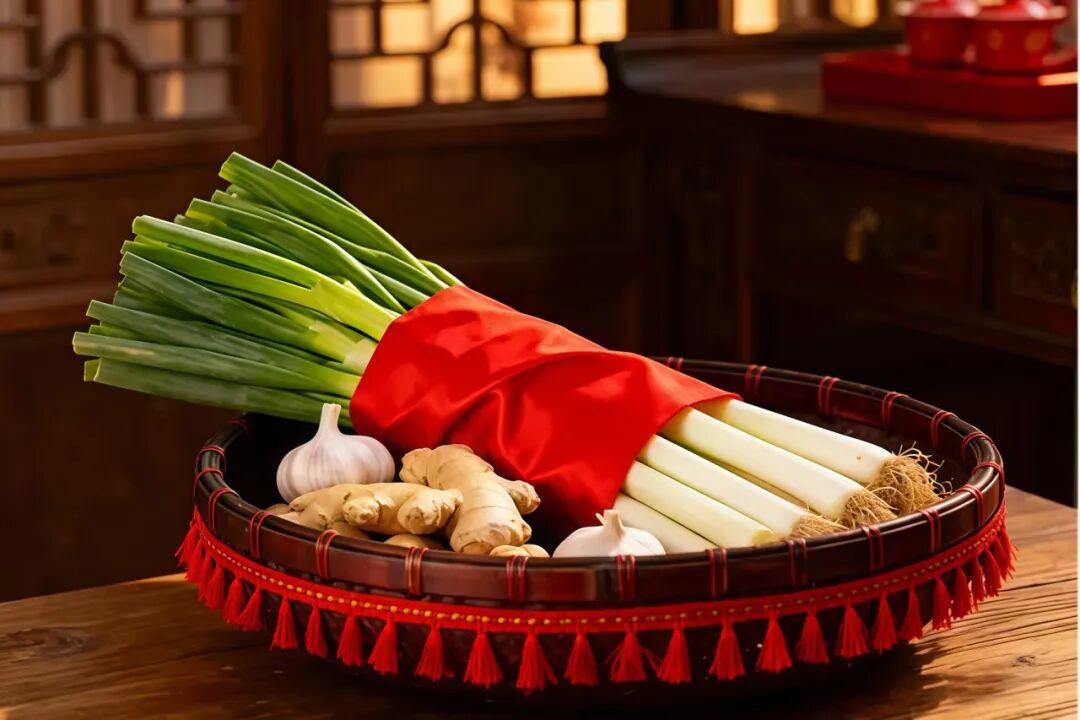 而在更广阔的中国民俗里,葱因其与“聪”的谐音,早已成为一种寓意美好的文化符号。例如在婚姻等人生重要时刻,它常因“葱”与“聪”的谐音,被用来祝福新人生活聪慧、子孙聪颖。朴素的传统观念凝聚了人们对土地最深沉的敬意、对收成最热切的向往,以及对生活最质朴而真挚的祝福。