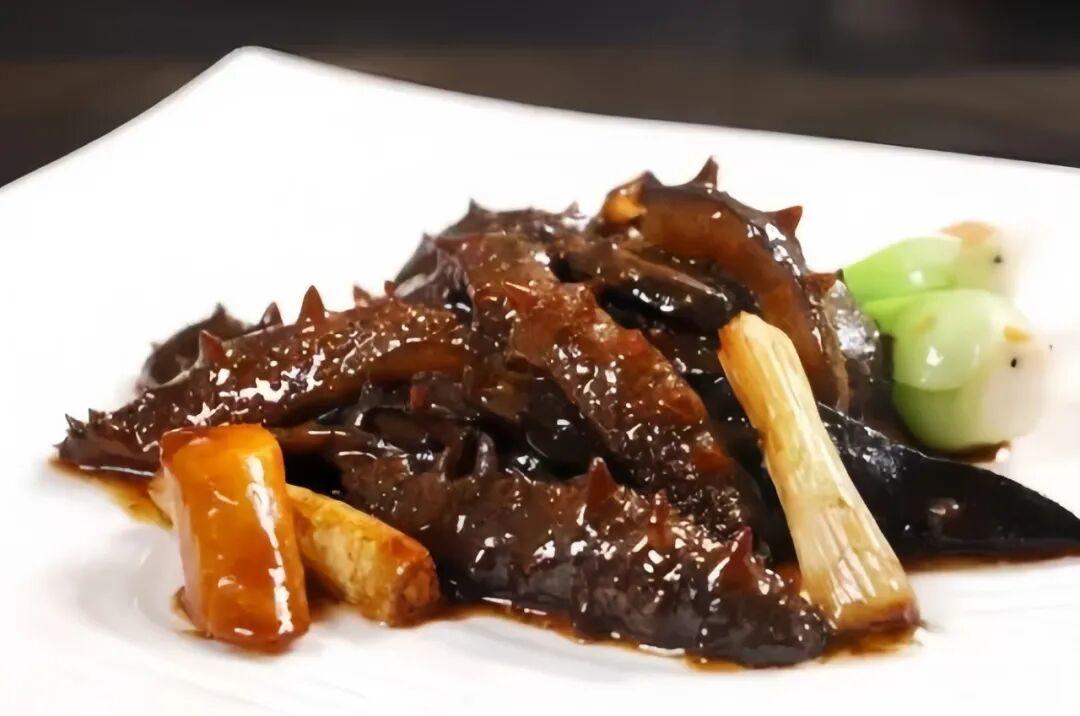 鲁菜的厚重,离不开章丘大葱的加持。选用三年生海参泡发至软糯,章丘大葱切段炸至金黄出香,再与海参同烧,加高汤慢煨。葱香渗入海参肌理,中和海味的腥,凸显鲜醇;海参吸饱葱香汤汁,软糯中带着葱的焦香,是宴席上的压轴硬菜。