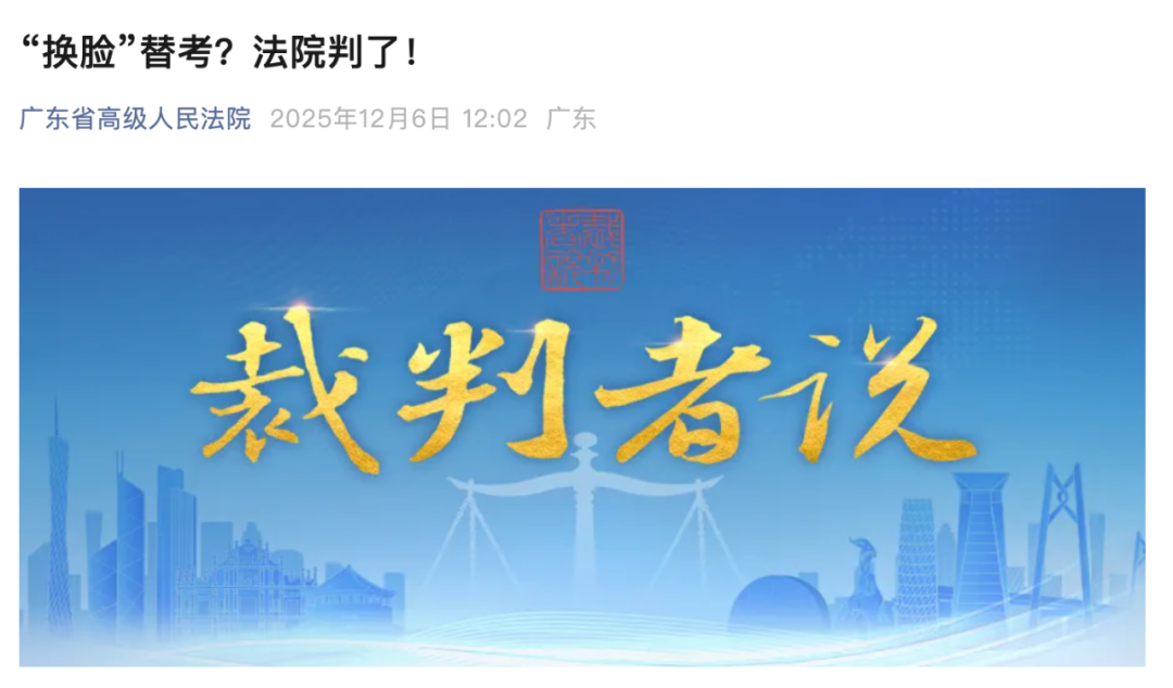 一团伙长期组织“枪手”跨十余省市替考,涉案金额逾千万元,案件经广东省江门市人民法院审理后,百余名作弊考生入职后被全部开除,全链条犯罪人员均受到法律严惩。12月6日,广东省高级人民法院微信公众号披露上述案情。
