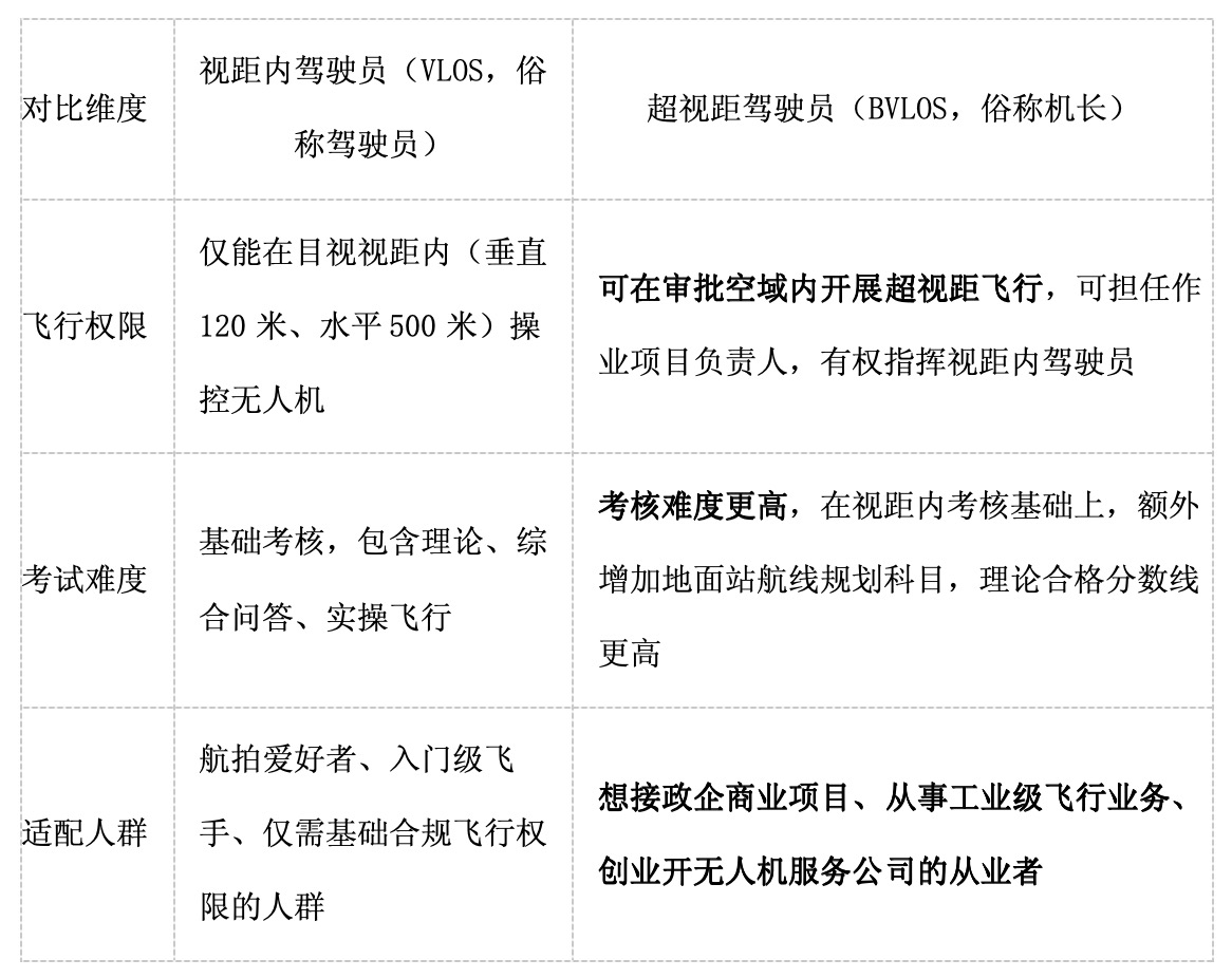 简单总结:只是爱好者拍风景或者兼职接航拍业务,考视距内驾驶员完全够用;想靠无人机接单就业、做商业项目,直接考超视距驾驶员,是行业刚需。